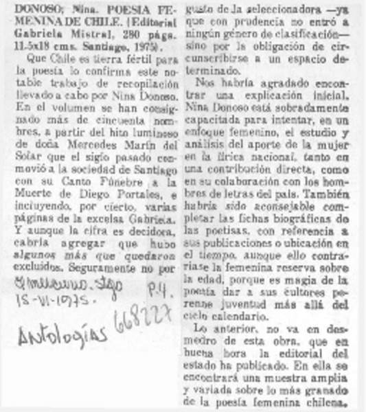 Autores chilenos - Donoso, Nina - Poesía femenina chilena