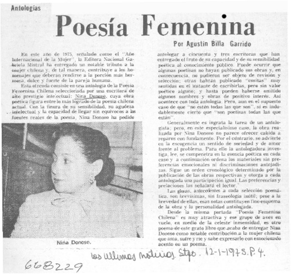 Poesía femenina [artículo] Agustín Billa Garrido.