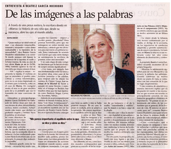 Autoras chilenas - entrevista - García Huidobro, Beatriz - Marea