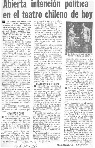 Abierta intención política en el teatro chileno de hoy. [artículo]