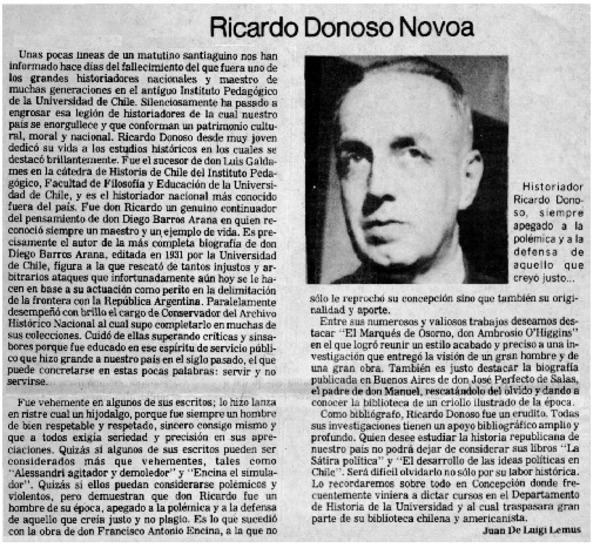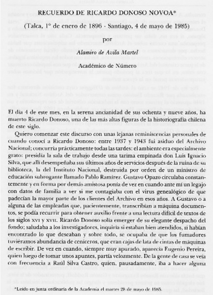 Recuerdo de Ricardo Donoso Novoa [artículo] Alamiro de Avila Martel.