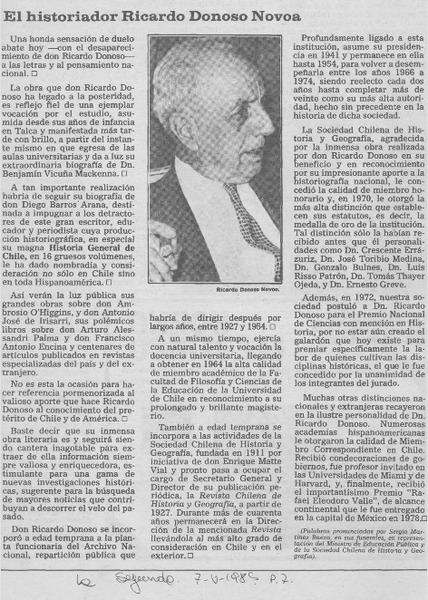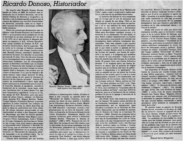 Ricardo Donoso, historiador [artículo] Manuel Salvat Monguillot.