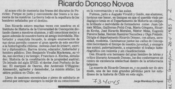 Ricardo Donoso Novoa [artículo] Jorge Mendoza Enríquez.