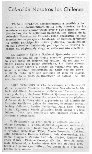 Colección nosotros los chilenos [artículo] Marino Muñoz Lagos.