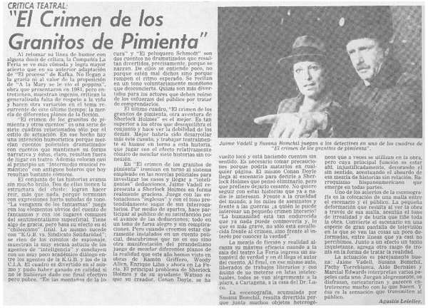 "El Crimen de los Granitos de Pimienta" [artículo] Agustín Letelier.