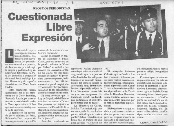 Cuestionada libre expresión [artículo] Fabricio Gallardo.