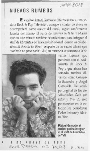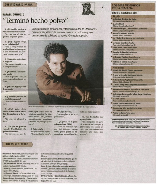 Gumucio, Rafael - El galán perfecto - Autores chilenos - Entrevistas - Gumucio Araya, Rafael