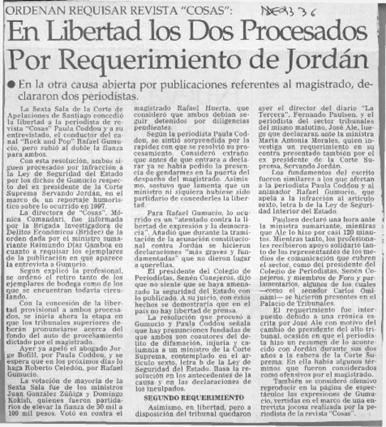Procesados Rafael Gumucio y Paula Coddou [artículo] Valentina Rodríguez.