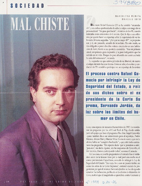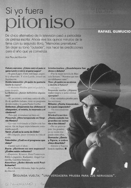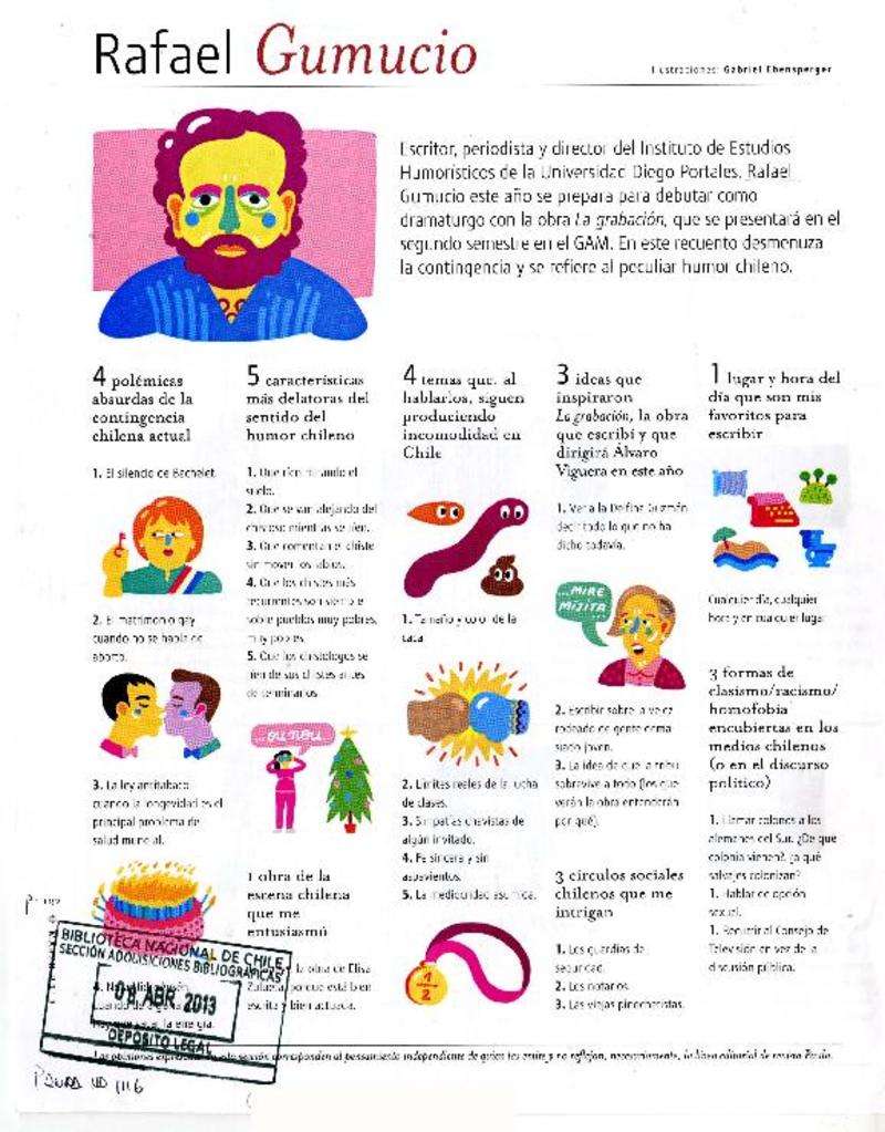 Rafael Gumucio, escritor columnista y comediante (entrevista) [artículo] Nicolás Sánchez.