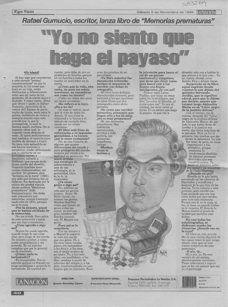 "Yo no siento que haga el payaso" [artículo] Willy Hantenhoff
