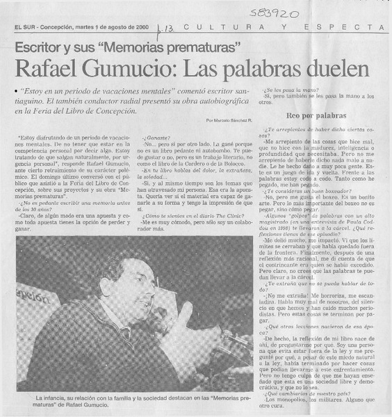Rafael Gumucio, las palabras duelen [artículo] Marcelo Sánchez R.
