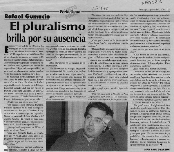 El pluralismo brilla por su ausencia [artículo] Jean Paul Oyarzún