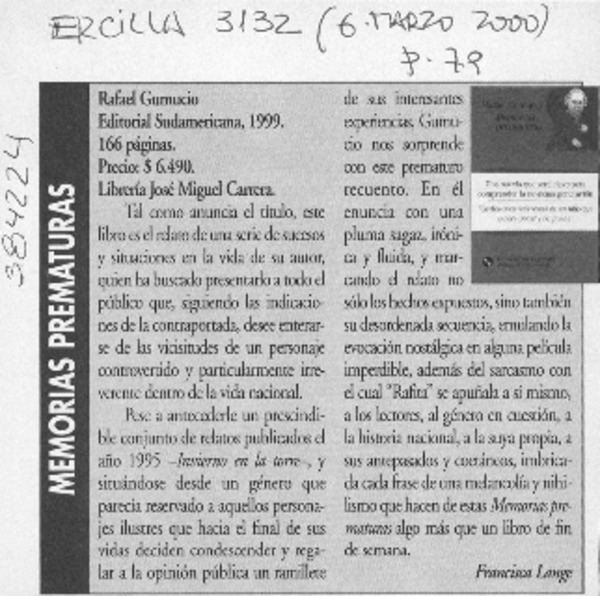 Autores chilenos - Memorias prematuras - Gumucio, Rafael