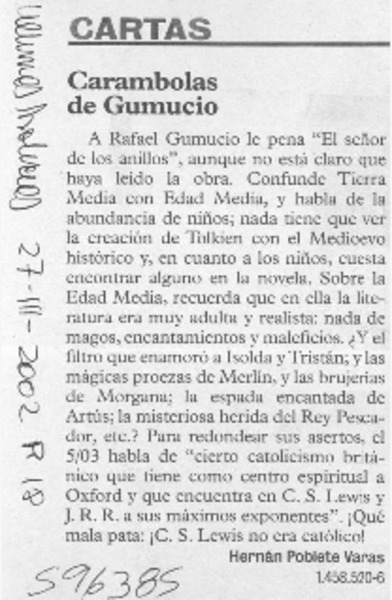Carambolas de Gumucio [artículo] Hernán Poblete Varas