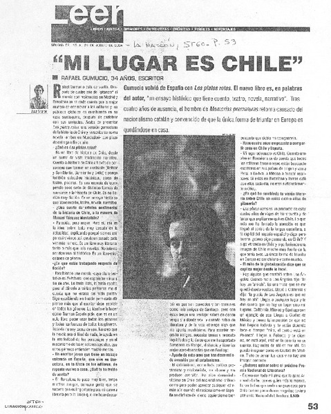 Mi lugar es Chile [entrevista] [artículo] Juan Sharpe.