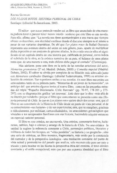 "Los Platos rotos": una historia personal de Chile [artículo]