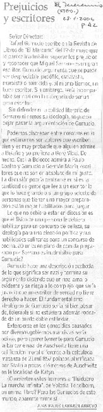 Prejuicios y escritores [artículo] Juan Pablo Larraín Arroyo.