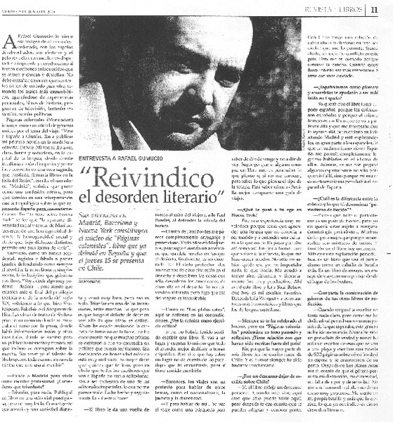 Gumucio, Rafael - Entrevistas - Autores chilenos - Páginas coloniales