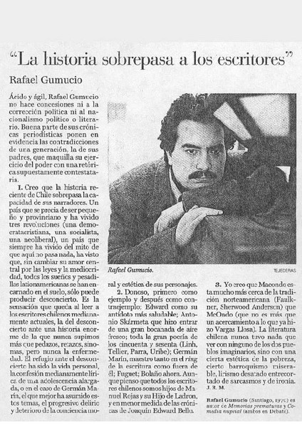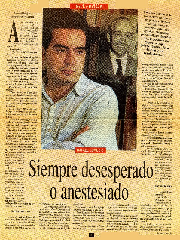 Rafael Gumucio "cuando escribo, puedo vengarme de mi torpeza en la vida real" [entrevista] [artículo]Julieta Lombardi.