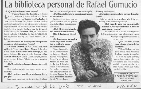 La biblioteca personal de Rafael Gumucio [entrevista]. [artículo] :