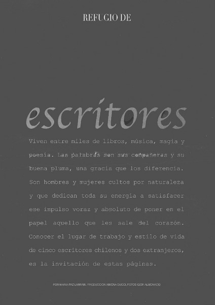 Autores chilenos - Lemebel, Pedro - Calderón, Alfonso - Skármeta, Antonio - Autores brasileños - Zambra, Alejandro - Coelho, Paulo - Gumucio, Rafael