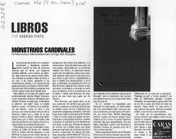 Autores chilenos - Monstruos cardinales - Gumucio, Rafael