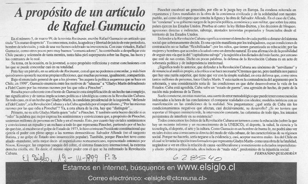 A propósito de un artículo de Rafael Gumucio [artículo] Fernando Quilodrán