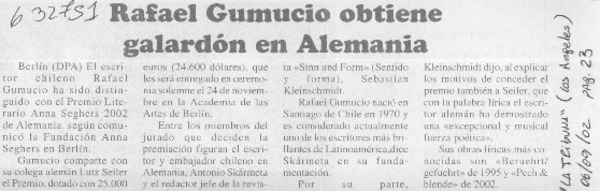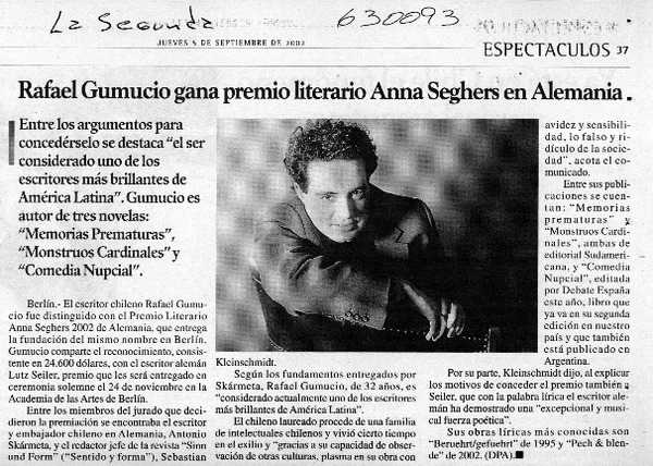 Rafael Gumucio obtiene galardón en Alemania [artículo]