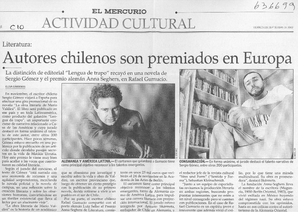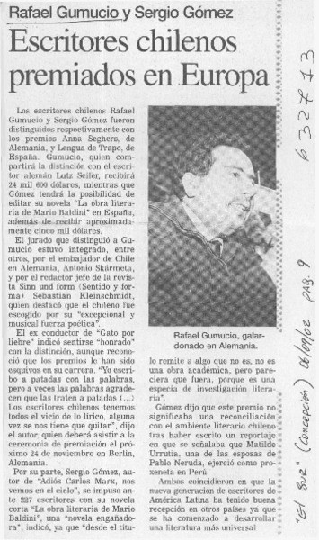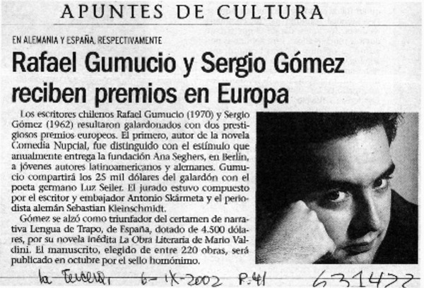 Rafael Gumucio y Sergio Gómez reciben premios en Europa [artículo]