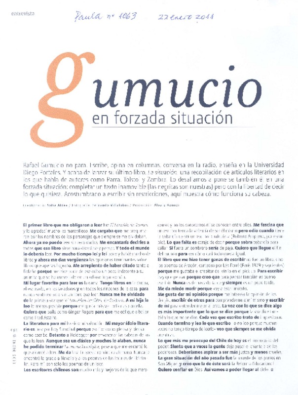 Rafael Gumucio [artículo] Paula Troncoso Cruz.