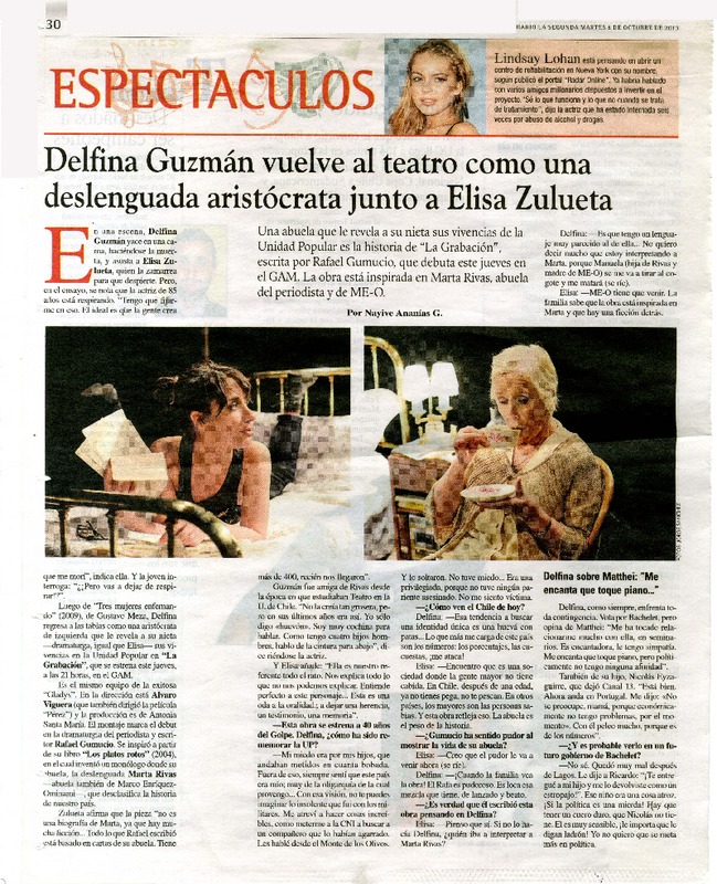 Delfina Guzmán vuelve al teatro como una deslenguada aristócrata junto a Elisa Zulueta [artículo] Nayive Ananías G.
