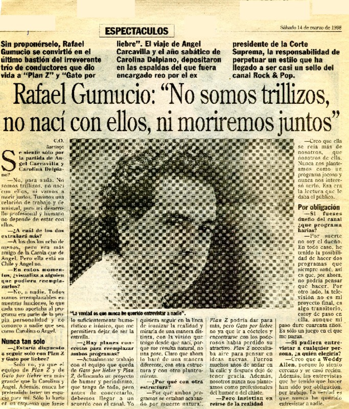 Rafael Gumucio: "no somos trillizos, no nací con ellos, ni moriremos juntos" [artículo] C. O.