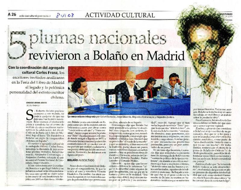 5 plumas nacionales revivieron a Bolaño en Madrid [artículo] Ignacio Arana Araya.