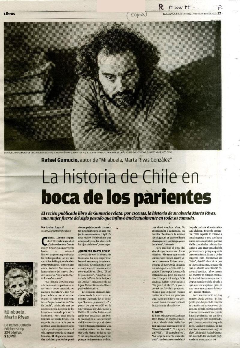 Autores chilenos - Entrevistas - Gumucio Araya, Rafael - Gumucio, Rafael - Mi abuela Marta Rivas González