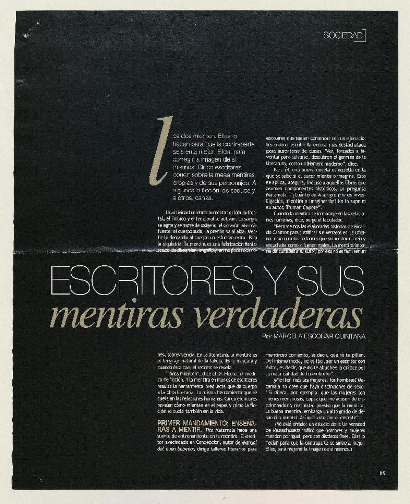 Escritores y sus mentiras verdaderas [artículo] Marcela Escobar Quintana.