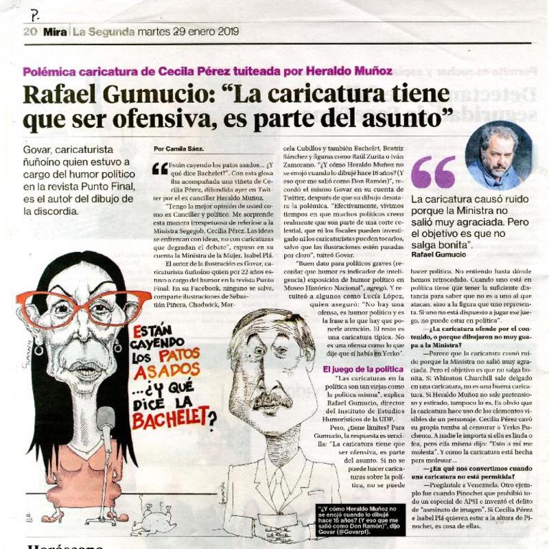 Rafael Gumucio: "la caricatura tiene que ser ofensiva, es parte del asunto" [entrevista] [artículo] : Camila Sáez.