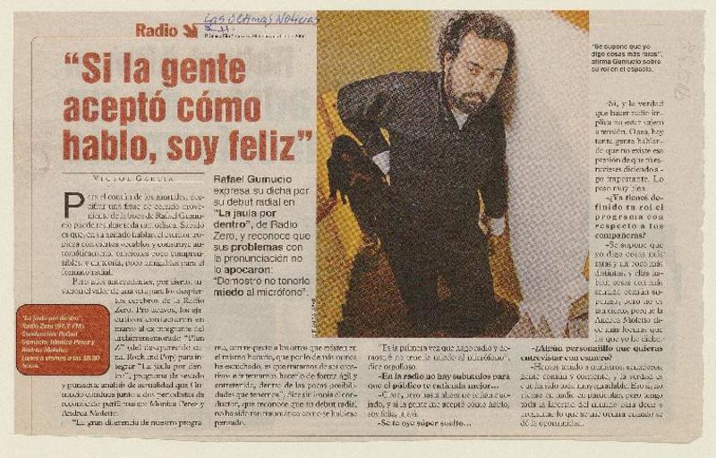 "Si la gente aceptó cómo hablo, soy feliz" [entrevista] [artículo] : Víctor García.