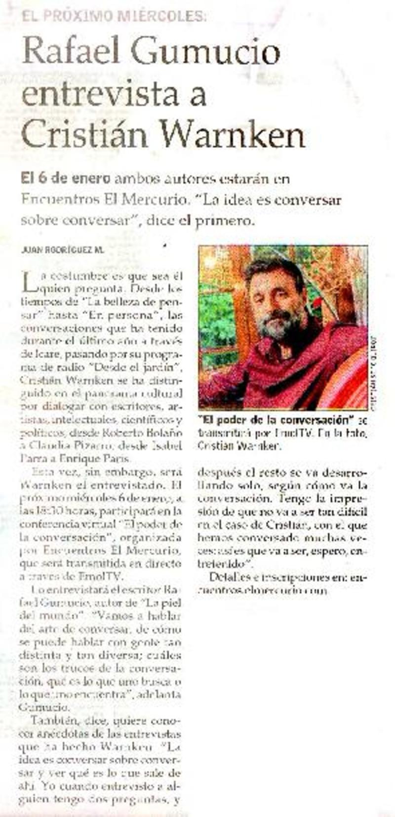 Rafael Gumucio entrevista a Cristián Warnken [artículo] Juan Rodríguez M.