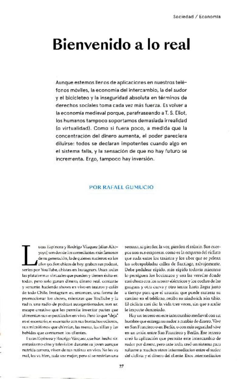 Bienvenido a lo real [artículo] Por Rafael Gumucio