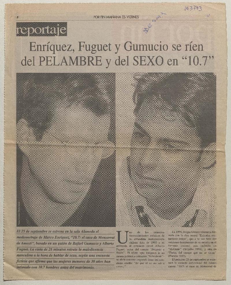 Enríquez, Fuguet y Gumucio se ríen del pelambre y del sexo en "10.7" [entrevista] [artículo] : Javier Ibacache V.