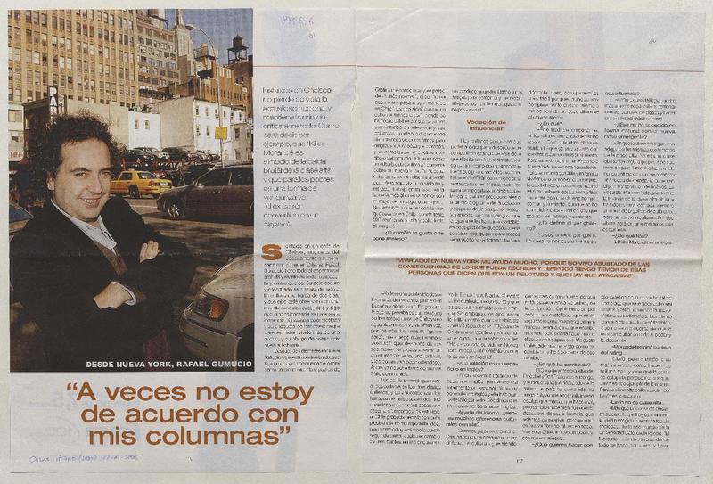 "A veces no estoy de acuerdo con mis columnas" [entrevista] [artículo] : Manuel Santelices.