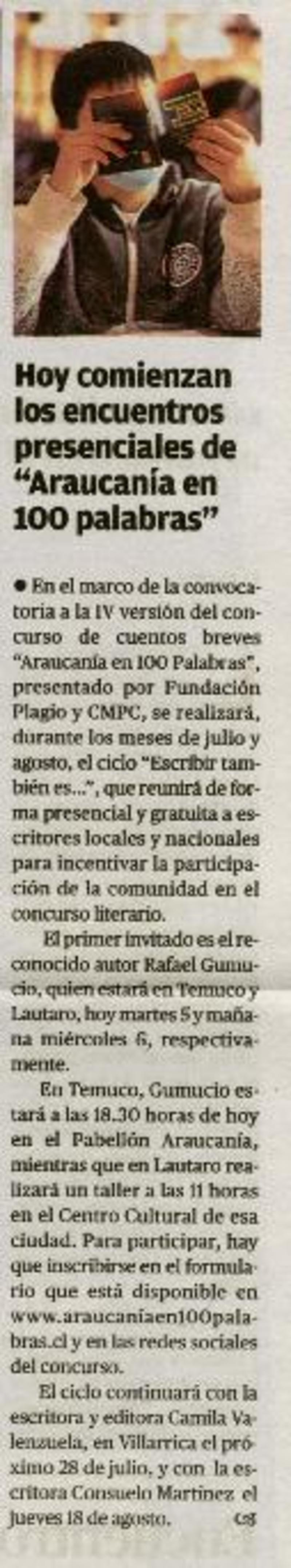 Hoy comienzan los encuentros presenciales de "Araucania en 100 palabras" [artículo]