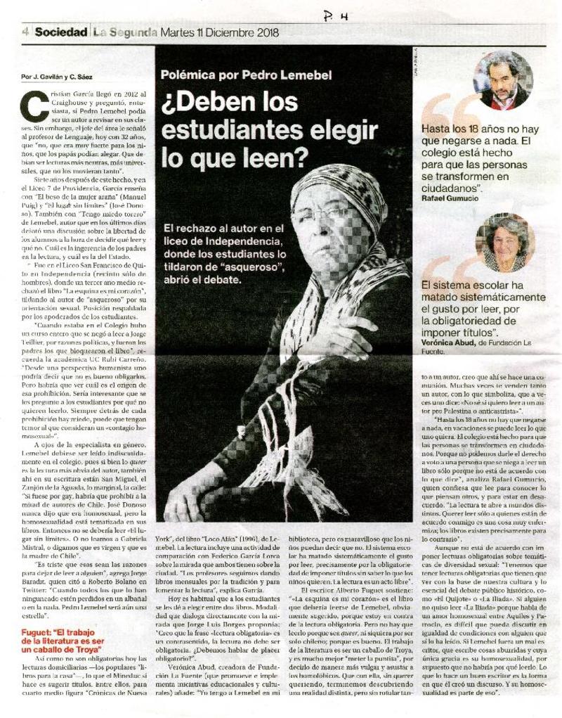 Polemica por Pedro Lemebel ¿Deben los estudiantes elegir lo que leen? [artículo] : J. Gavilán.