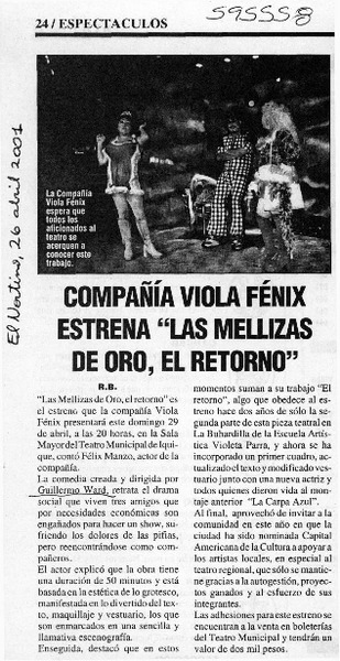 Compañía Viola Fénix estrena "Las mellizas de oro, el retorno" [artículo] R. B.