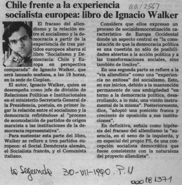 Chile frente a la experiencia socialista europea, libro de Ignacio Walker [artículo].