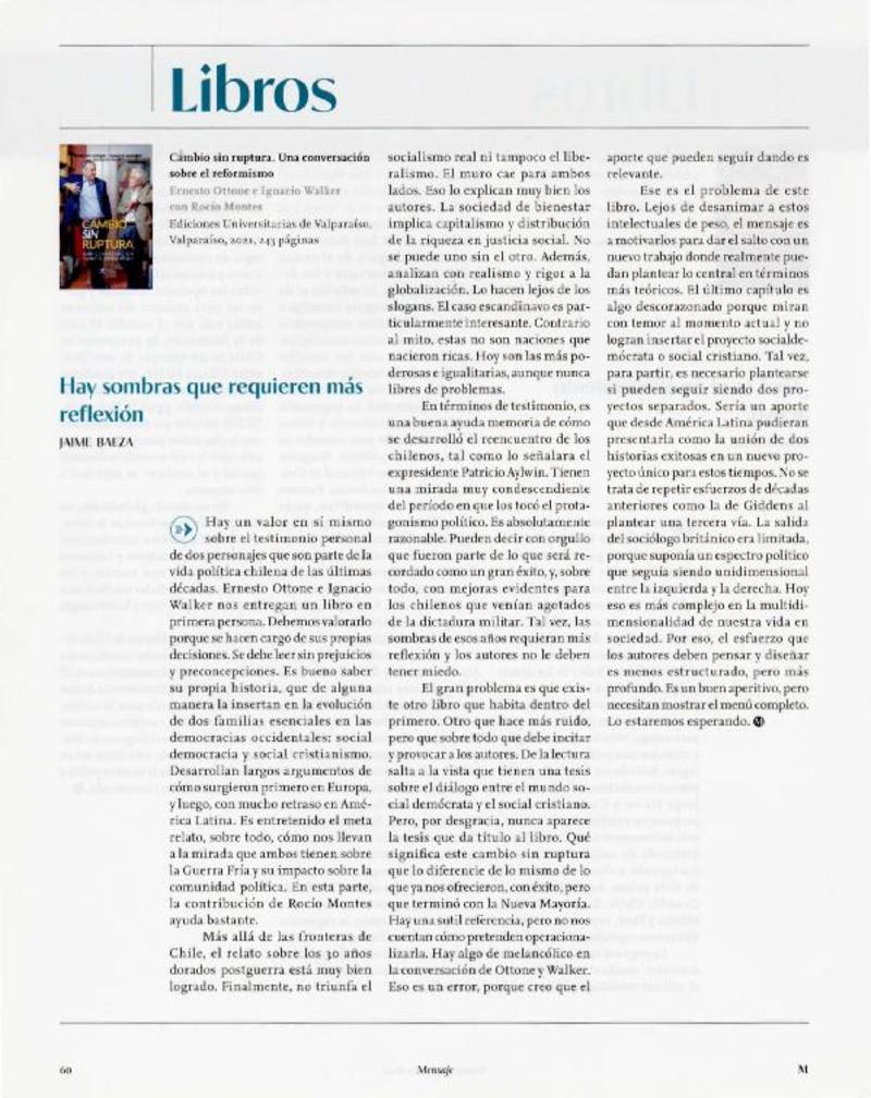 Autores chilenos - Ottone F., Ernesto - Walker, Ignacio - Montes, Rocío - Cambio sin ruptura. una conversación sobre el reformismo