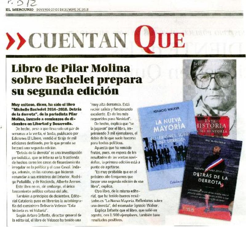 Libro de Pilar Molina sobre Bachelet prepara segunda edición [artículo]