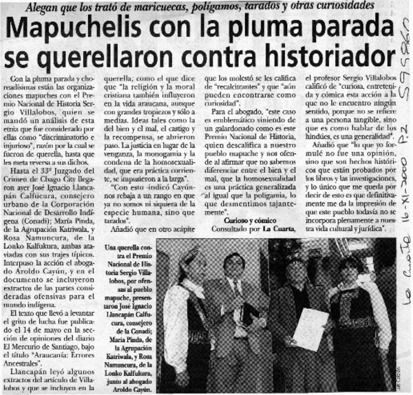 Mapuchelis con la pluma parada se querellaron contra historiador [artículo].