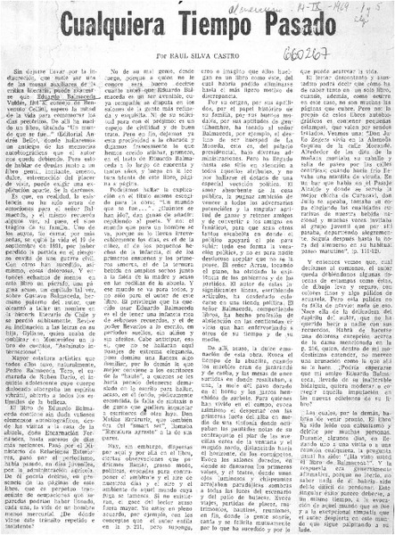 Cualquiera tiempo pasado [artículo] Raul Silva Castro.