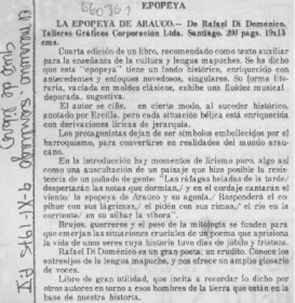 Autores chilenos - Di Doménico, Rafael - Epopeya de Arauco